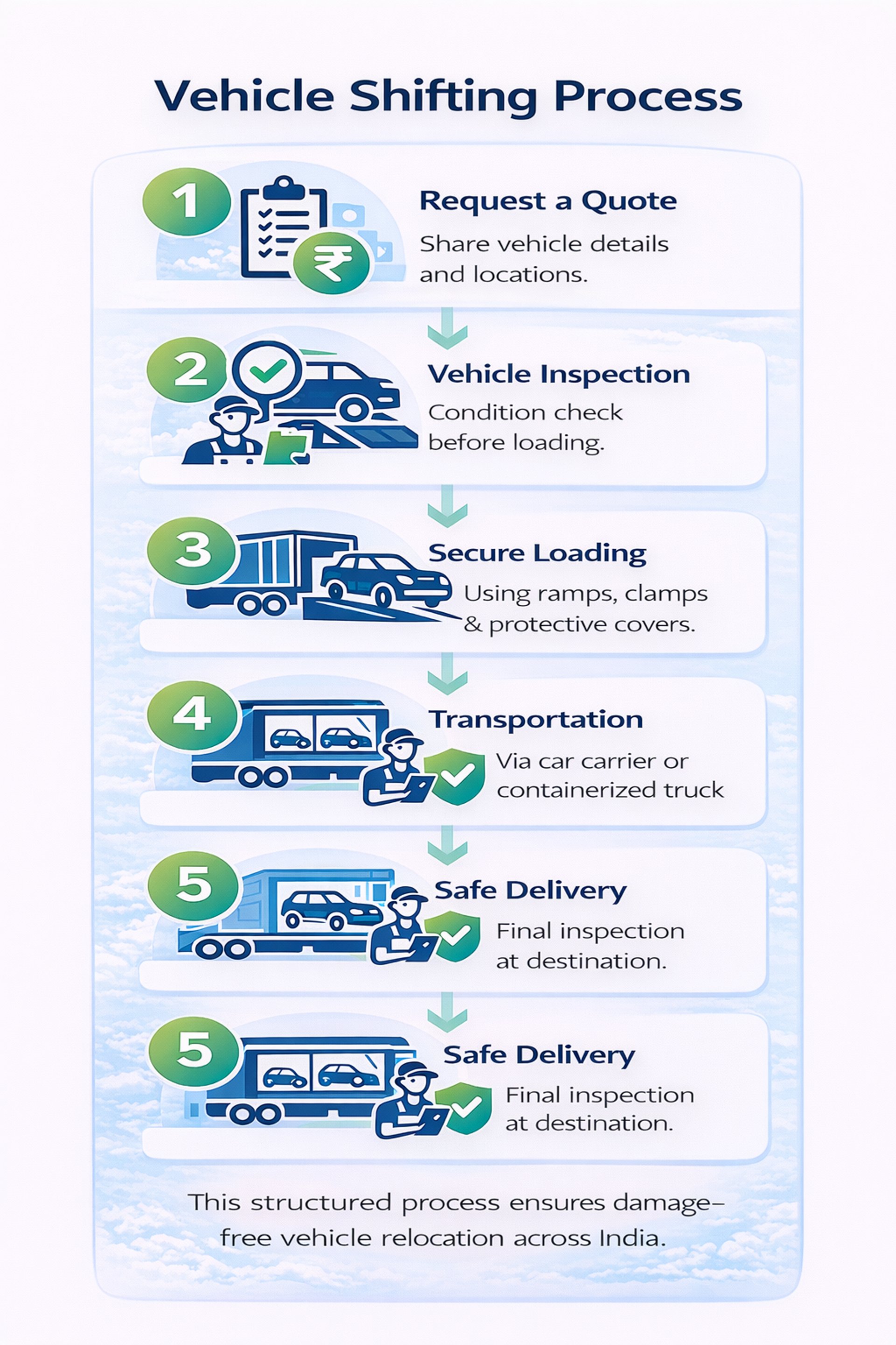We specialize in safe car transportation using dedicated car carriers and containerized trucks. From hatchbacks and sedans to luxury and premium vehicles, every car is handled with utmost care.